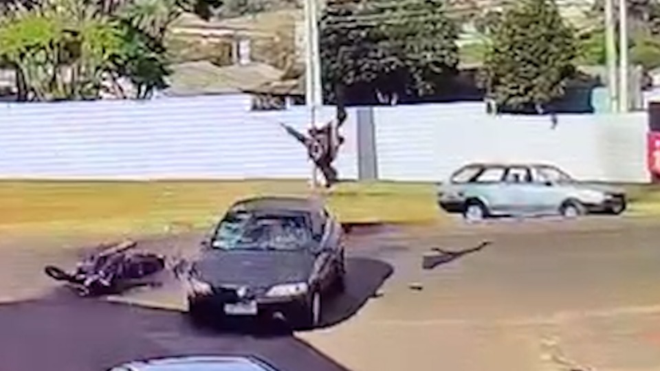 Motociclista é arremessado após batida e sofre lesão na coluna