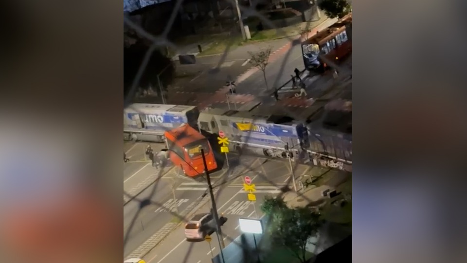 Ônibus é partido ao meio por trem em Curitiba