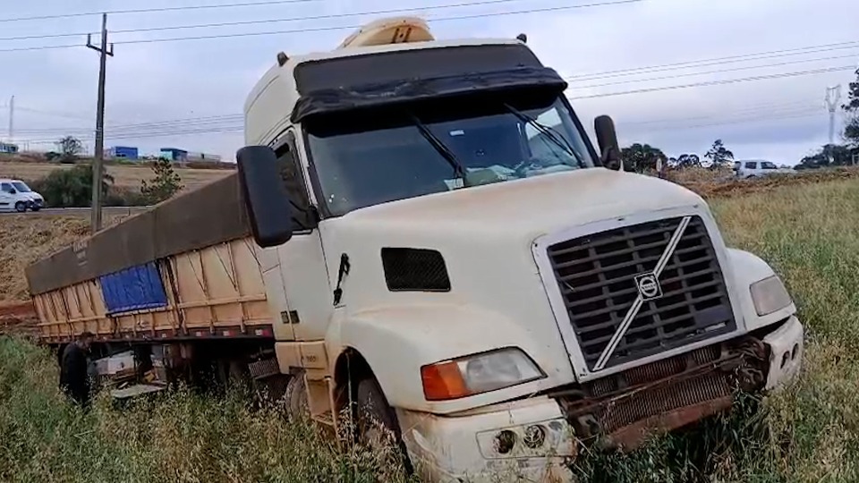 Carreta sai da pista na BR-277 em Santa Tereza do Oeste