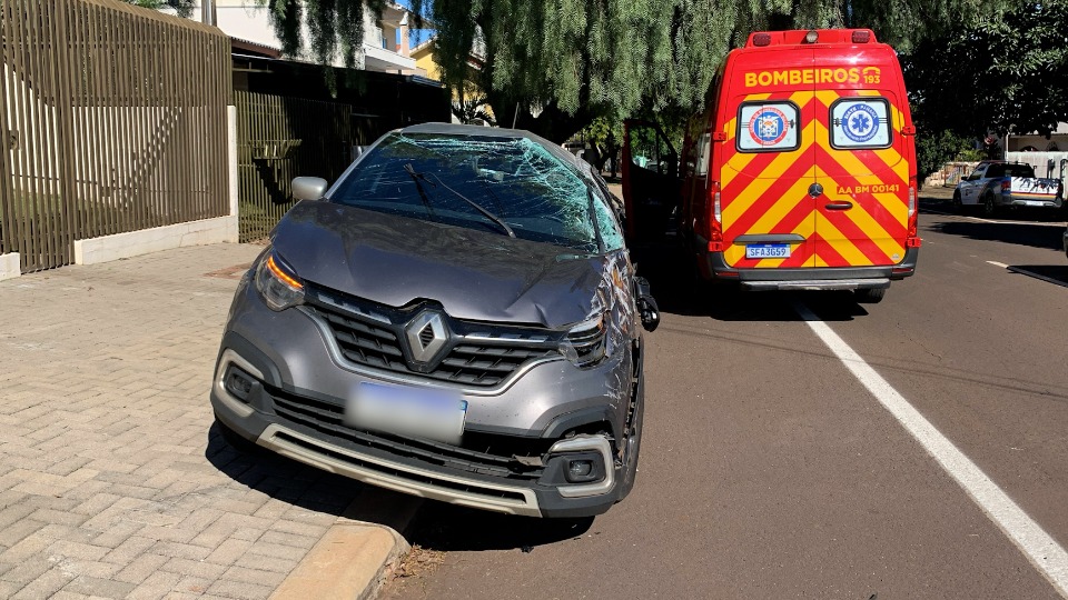 Batida entre dois carros termina com capotamento e mobiliza Siate na Rua Souza Naves em Cascavel