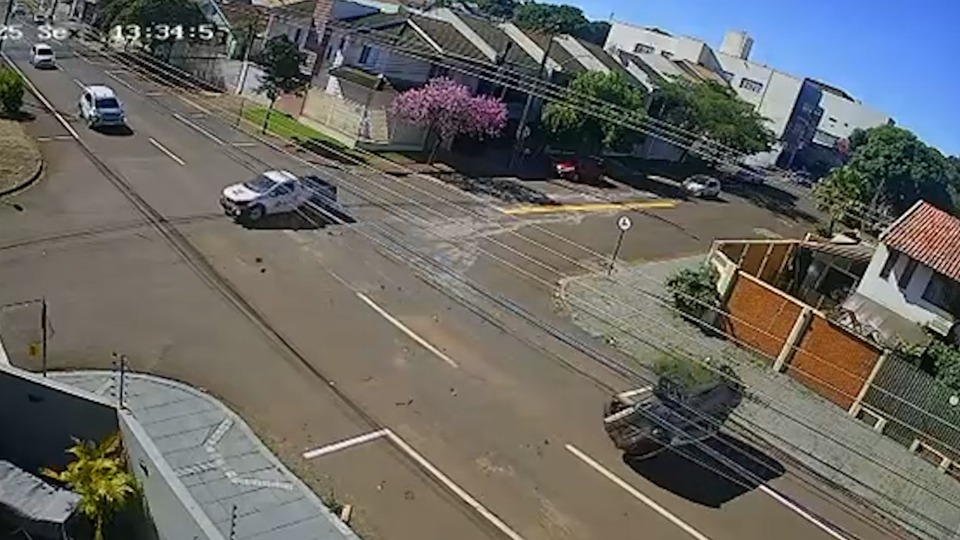 Caminhão bate, arrasta e faz carro tombar na BR-277 no Paraná; vídeo
