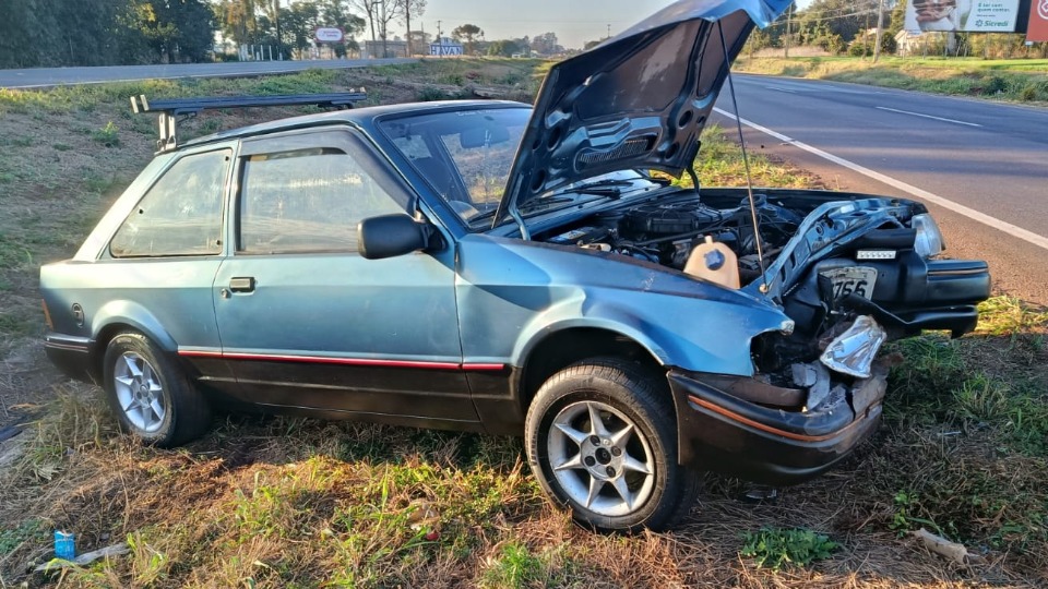 Fiat Prêmio furtado capota e é abandonado por suspeito na PR-182